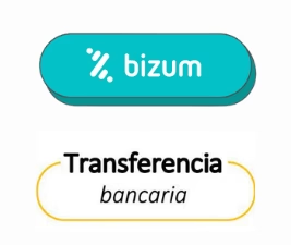 Aceptamos Efectivo, Bizum y también transferencia como formas de pago.